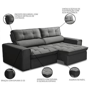 Muito mais versátil que o sofá tradicional, o sofá retrátil proporciona conforto e funcionalidade extra, já que você pode sentar, esticar as pernas e ainda deitar com espaço de sobra para assistir seu programa de favorito. Além disso, conta com uma estrutura robusta, tapeçaria em espuma de alta densidade e, ainda, revestimento em veludo suave e macio ao toque. Ahhh, e harmoniza facilmente com diversos estilos de decoração, graças às tonalidades sóbrias e atemporais. Em outras palavras, esse sofá 3 lugares será o ícone mais desejado na sua casa.