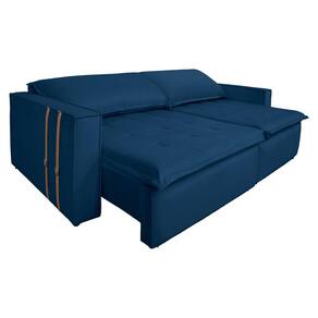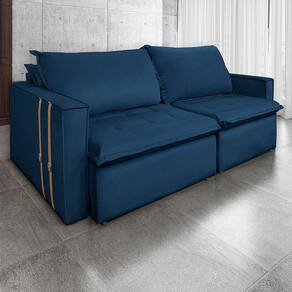 A família aumentou e você precisa de um sofá maior? O Sofá México é uma ótima opção para comportar várias pessoas. Super fácil de limpar! As crianças vão querer passar horas se divertindo assistindo desenhos animados. Portanto, somente o nosso sofá permite que o corpo repouse com conforto, mantendo a posição correta da coluna. Suas medidas são de 230 cm, com mecanismo metálico e reclinável com 3 posições, produzido em madeira de eucalipto, espuma D-26, molas espirais, manta acrílica e percinta elástica, com pés de madeira rosqueáveis. Encosto com almofadas soltas 100% de fibra siliconada, braços com espuma D-23 de excelente qualidade. Revestido com tecido Veludo no tom Azul Marinho, contém também um detalhe em sintético Marrom nos braços possibilitando uma enorme suavidade ao móvel. Por isso, renove a decoração do seu ambiente com o Sofá México.