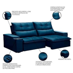 Feito para que você possa curtir um momento de relaxamento de forma plena, o Sofá Retrátil Reclinável 3 Lugares 230cm Moritz F05 Veludo Azul, da Mpozenato, é exatamente a dose de conforto extra que a você e sua sala de estar precisam.