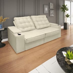 O sofá conta com assentos retráteis que se ajustam conforme sua necessidade, além de porta-copos e entrada USB integrados, permitindo que você aproveite suas bebidas e dispositivos eletrônicos sem se levantar. Seu tecido Suede proporciona toque macio, durabilidade e facilidade de limpeza, garantindo conforto e beleza todos os dias.