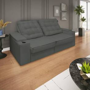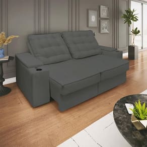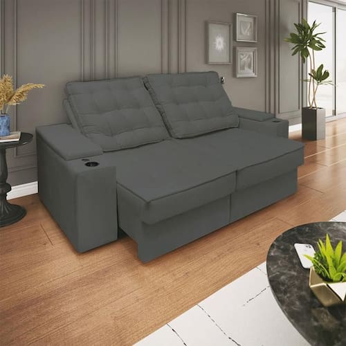 O sofá conta com assentos retráteis que se ajustam conforme sua necessidade, além de porta-copos e entrada USB integrados, permitindo que você aproveite suas bebidas e dispositivos eletrônicos sem se levantar. Seu tecido Suede proporciona toque macio, durabilidade e facilidade de limpeza, garantindo conforto e beleza todos os dias.