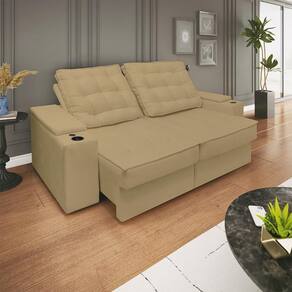 O sofá conta com assentos retráteis que se ajustam conforme sua necessidade, além de porta-copos e entrada USB integrados, permitindo que você aproveite suas bebidas e dispositivos eletrônicos sem se levantar. Seu tecido Suede proporciona toque macio, durabilidade e facilidade de limpeza, garantindo conforto e beleza todos os dias.