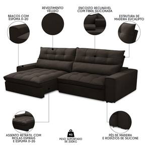 O Sofá Retrátil Reclinável 3 Lugares 250cm Damy F05 Veludo Marrom Escuro, da Mpozenato é uma ótima escolha para quem busca conforto e beleza na hora de decorar a Sala De Estar.
