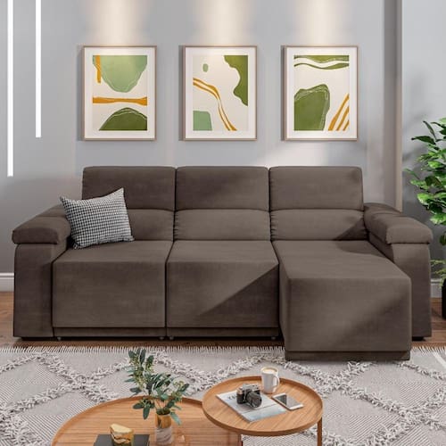 Sofá Retrátil Reclinável 3 Lugares Fox 2,10 Marrom Marrom
