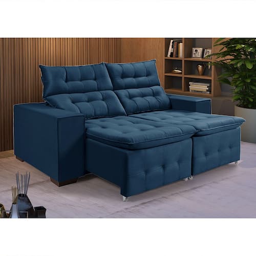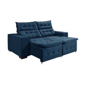 Sofá Retrátil Reclinável 3 Lugares Pillow Veludo 1,90m Espuma Premium Assento Macio - Azul Veludo