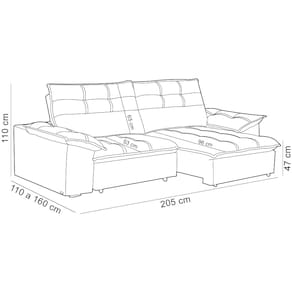 Profundidade total com assento aberto: 160 cm