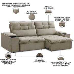 Com assentos e encosto macios e braços retráteis e removíveis, esse sofá 3 lugares traz flexibilidade ao seu espaço, adaptando-se perfeitamente às suas necessidades, seja fechado, para receber visitas ou aberto para curtir o merecido descanso. E o melhor de tudo: ele conta com porta-copos, ideal para servir suas bebidas favoritas enquanto você relaxa. Cada detalhe é pensado para proporcionar uma experiência acolhedora e convidativa, criando um ambiente perfeito para maratonas de filmes ou conversas descontraídas. Desfrute do equilíbrio ideal entre funcionalidade e estilo com o Sofá Merida, um verdadeiro aliado para a sua sala de estar!