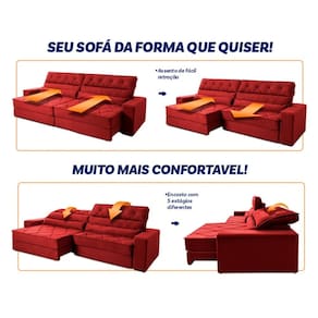 Ele possui encosto reclinável em cinco posições, proporcionando-lhe mais conforto na hora do descanso. Não para por aí: seu assento retrátil conta com espuma D33 e molas ensacadas, transformando seu sofá em uma verdadeira cama para assistir seu filme preferido.