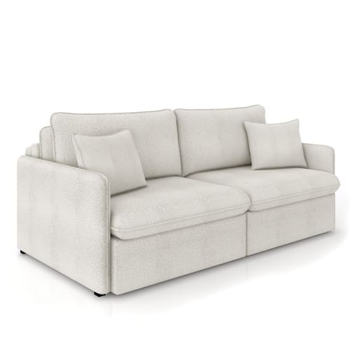 O Sofá Retrátil e Reclinável Maili 4 Lugares é a escolha perfeita para quem busca conforto e estilo em um só móvel. Com 254 cm de largura, revestido em tecido Bouclê, ele se destaca por sua aparência moderna e aconchegante. Produzido em madeira de lei (eucalipto), devidamente tratada e aparelhada, com reforços de cantoneiras e chapas em MDF, ideal para suportar o uso diário e manter a integridade do sofá. A estrutura metálica do mecanismo proporciona resistência e longa durabilidade, permitindo que o sofá se transforme em cama de forma segura e com facilidade. Para proporcionar conforto máximo, o assento é composto por espumas D33, molas ensacadas, molas espirais e manta acrílica, apoiadas em cintas metálicas, enquanto o encosto conta com cintas metálicas e 100% fibra siliconada, oferecendo um toque macio e relaxante. Os braços são feitos com espuma D26 para garantir um apoio confortável. O encosto reclinável possui sistema de catraca com 3 posições, permitindo ajustar o sofá de acordo com suas preferências de conforto. As almofadas soltas decorativas, além de realçar o estilo do sofá, oferecem flexibilidade para ajustar o conforto e personalizar o visual. Os pés em madeira na cor tabaco completam o design sofisticado, dando um toque elegante ao ambiente. Este maravilhoso sofá é ideal para momentos de descanso, seja assistindo a um filme ou simplesmente relaxando após um dia longo. Transforme seu espaço com o Sofá Maili. Aproveite agora!