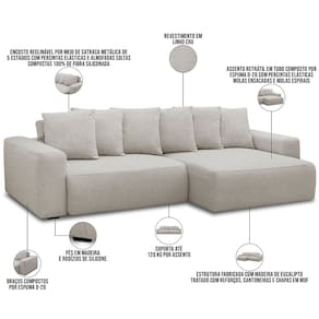 O famoso sofá retrátil reclinável teve sua definição atualizada com o Sofá Retrátil Reclinável 4 Lugares Sala de Estar 260cm Van Gogh F04 Linho Cru, da Lyam Decor.