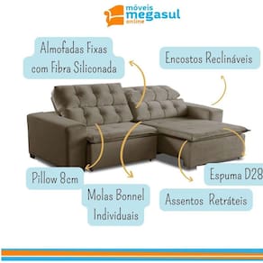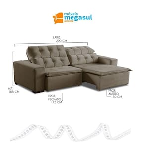 Ao chegar em casa nada melhor que o aconchego de um sofá extravagante em conforto, por isso conte com o Sofá 6 Lugares Retrátil e Reclinável Alasca 2,90m na cor Marrom, fabricado pela MegaSul, possui encosto reclinável, com catraca silenciosa 5 estágios, almofadas fixas de fibra siliconada. Perfeito para seus momentos de descanso e descontração! Valorize e complete o seu lar com muita beleza e funcionalidade! Aproveite e experimente o novo! O tecido veludo é de alto padrão, depois da seda, é um dos tecidos mais nobres. Possui textura ricamente macia e suave, associado a classe e elegância com a proposta de sensação ao toque mais sensível e encantador. Além de trazer sofisticação para o produto, ter variações de cores extremamente modernas, que agregam na decoração do seu ambiente, com o ar de sofisticação, mais decorativo. Estrutura do Sofá 6 Lugares Retrátil e Reclinável Alasca é eucalipto tratado de reflorestamento ecologicamente correto. O assento é retrátil, pillow, espuma D-28, revestido com manta fibra siliconada, contém molas individuais bonnel, corrediça metálica e percinta elástica. Dados Técnicos do Sofá 6 Lugares Retrátil e Reclinável Alasca: Largura: 2,90m Altura: 1,05m Profundidade com assento fechado: 1,15m Profundidade com assento aberto: 1,70m Cor: Bege OBS: Estofado disponível em mais de 10 cores em tecido veludo de alta qualidade. * Para escolher outra a cor, informe o código nas observações adicionais ao finalizar a compra. Caso tenha alguma dúvida, ou não consiga escolher a cor durante a compra, Após a compra nosso atendimento entrará em contato com você para confirmar a COR e o TECIDO, fique tranquila (o). Tecido/Revestimento: Veludo Informações Adicionais: Garantia de 90 dias para defeitos de fabricação; Limpeza ou Manutenção: Utilizar escova com cerdas macias. NÃO utilizar produtos Abrasivos. Tecido/Revestimento: Veludo Montagem e instalação por conta do comprador; As imagens ambientadas são meramente ilustrativas e podem apresentar itens que não compõe o produto; As cores do produto podem variar de acordo com o monitor, a iluminação do ambiente ou sua percepção visual. Informações sobre a entrega: VERIFIQUE as MEDIDAS para garantir que o sofá passe na porta e nos corredores de sua residência; NÃO NOS RESPONSABILIZAMOS por SUBIR o sofá por ESCADAS, NEM IÇAR o sofá;