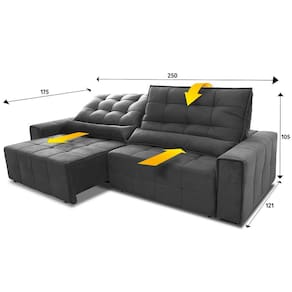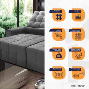 Ele possui encosto reclinável em cinco posições, proporcionando-lhe mais conforto na hora do descanso. Não para por aí: seu assento retrátil conta com espuma D35 e molas espirais, transformando seu sofá em uma verdadeira cama para assistir seu filme preferido.