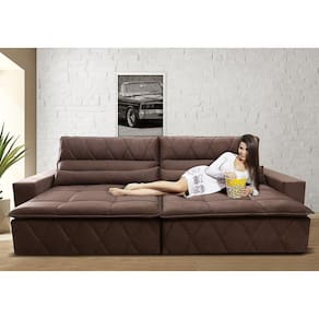 Sofá Retrátil/Reclinável Amsterdam 2,30 m Suede Veludo Tabaco c/ Molas no Assento - King Kong