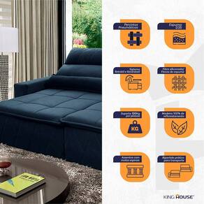 Ele possui encosto reclinável em cinco posições, proporcionando-lhe mais conforto na hora do descanso. Não para por aí: seu assento retrátil conta com espuma D35 e molas espirais, transformando seu sofá em uma verdadeira cama para assistir seu filme preferido.