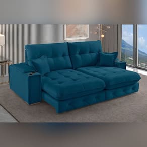 Sofá Retrátil Reclinável com Porta Copos 190cm Istambul Yescasa Azul - Azul Doce