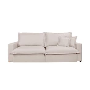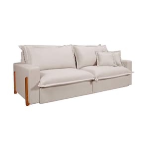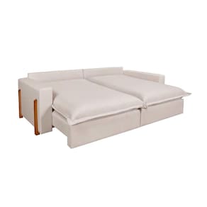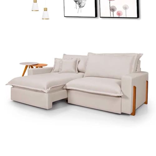 AS IMAGENS SÃO MERAMENTE ILUSTRATIVAS E PODEM SOFRER VARIAÇÕES DE COR E PEQUENOS DETALHES DE ACORDO COM O SEU MONITOR, ILUMINAÇÃO DO AMBIENTE E ATÉ MESMO A SUA PERCEPÇÃO VISUAL.Sofà RetrÃtil ReclinÃvel Davi com Molas Ensacadas no Assento Tecido Linho Cru 1,90m