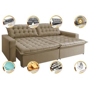 *Assentos: Feitos com espuma D33, Molas Bonnel, Fibra Siliconada, Percintas Dual Securit (Percintas Italianas Elásticas e Pneumáticas) e Madeira de Eucalipto, sua estrutura foi desenvolvida para dar mais qualidade e praticidade ao seu dia a dia. Seus assentos são retráteis, dando mais modernidade a sua sala, além de ser uma excelente opção para passar horas deitado/sentado sem dores e/ou desconfortos.