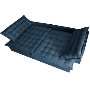 Sofá Retrátil Reclinável E Cama 2,75m Cama Inbox Suede Velusoft Azul