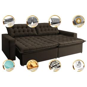 *Assentos: Feitos com espuma D33, Molas Bonnel, Fibra Siliconada, Percintas Dual Securit (Percintas Italianas Elásticas e Pneumáticas) e Madeira de Eucalipto, sua estrutura foi desenvolvida para dar mais qualidade e praticidade ao seu dia a dia. Seus assentos são retráteis, dando mais modernidade a sua sala, além de ser uma excelente opção para passar horas deitado/sentado sem dores e/ou desconfortos.