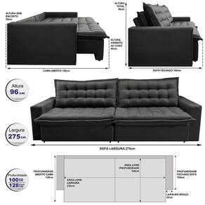 Sofá Retrátil Reclinável e Cama 2,75m Cama inBox Flex. Suede - Cinza