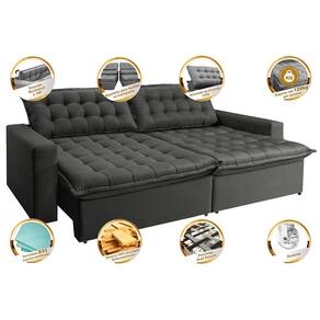 *Assentos: Feitos com espuma D33, Molas Bonnel, Fibra Siliconada, Percintas Dual Securit (Percintas Italianas Elásticas e Pneumáticas) e Madeira de Eucalipto, sua estrutura foi desenvolvida para dar mais qualidade e praticidade ao seu dia a dia. Seus assentos são retráteis, dando mais modernidade a sua sala, além de ser uma excelente opção para passar horas deitado/sentado sem dores e/ou desconfortos.