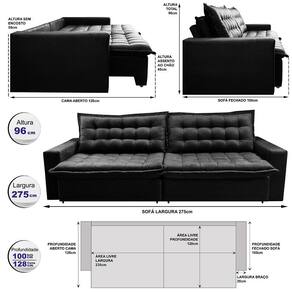 *Assentos: Feitos com espuma D33, Molas Bonnel, Fibra Siliconada, Percintas Dual Securit (Percintas Italianas Elásticas e Pneumáticas) e Madeira de Eucalipto, sua estrutura foi desenvolvida para dar mais qualidade e praticidade ao seu dia a dia. Seus assentos são retráteis, dando mais modernidade a sua sala, além de ser uma excelente opção para passar horas deitado/sentado sem dores e/ou desconfortos.