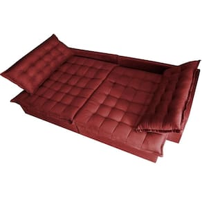 Sofá Retrátil Reclinável E Cama 2,95m Cama Inbox Suede Velusoft Vermelho