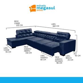 Sofá Retrátil Reclinável e Chaise 7 Lugares 370cm Super Confortável Sttilo Mega Sul - Azul
