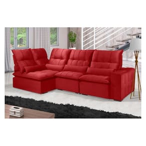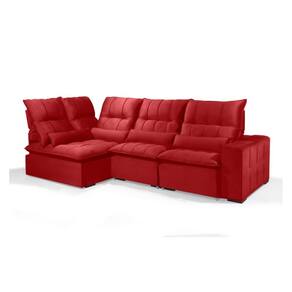 Sofá Retrátil Reclinável ELLOA DE CANTO COM CHAISE 3.25 x 1.80m ESTILO ESTOFADOS - França Velusoft COR "VERMELHO"