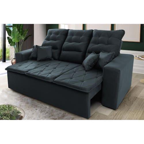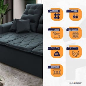 Ele possui encosto reclinável em cinco posições, proporcionando-lhe mais conforto na hora do descanso. Não para por aí: seu assento retrátil conta com espuma D23 e molas bonnel, transformando seu sofá em uma verdadeira cama para assistir seu filme preferido.