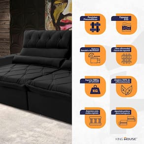 Ele possui encosto reclinável em cinco posições, proporcionando-lhe mais conforto na hora do descanso. Não para por aí: seu assento retrátil conta com espuma D35 e molas espirais, transformando seu sofá em uma verdadeira cama para assistir seu filme preferido.