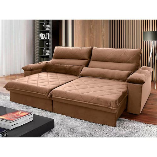 Ele possui encosto reclinável em cinco posições, proporcionando-lhe mais conforto na hora do descanso. Não para por aí: seu assento retrátil conta com espuma D35 e molas espirais, transformando seu sofá em uma verdadeira cama para assistir seu filme preferido.