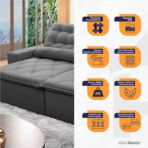 Ele possui encosto reclinável em cinco posições, proporcionando-lhe mais conforto na hora do descanso. Não para por aí: seu assento retrátil conta com espuma D35 e molas espirais, transformando seu sofá em uma verdadeira cama para assistir seu filme preferido.