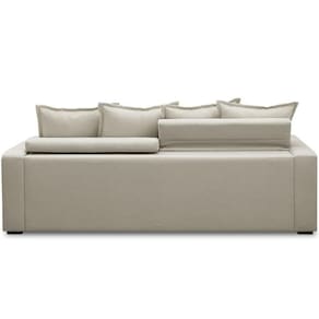 Encosto reclinável por meio de catraca metálica com 5 estágios e almofadas soltas 100% em fibra siliconada.