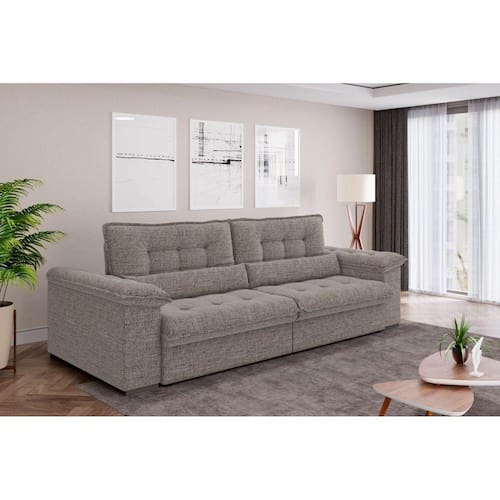 Se você está procurando um sofá robusto, elegante e confortável. Aqui está nosso sofá Majestoso de 200 metros, revestido em tecido de linho que une a qualidade e beleza nos detalhes. Suas principais características são maciez, durabilidade, facilidade de limpeza. Ele é um dos tecidos mais agradáveis para a combinação de elegância com conforto e refrescância. Indicado para sala de estar, tv , quarto.. Esse sofá é perfeito para maratonar aquela serie favorita, um bom descanso após um dia longo de trabalho... Acompanha Almofadas extras: 02 Almofada do assento: Fixa Almofada do encosto: Fixa Altura do assento até o chão: 48 Altura do Encosto: 70 Altura dos Pés: 10 Ambiente Principal: Sala de Estar Complexidade da Montagem: Baixa: pode ser montado por uma pessoa sozinha Cor: Marrom Cor do Produto: Marrom Densidade do Assento: D-28 Densidade do Encosto: D-26 Enchimento do Assento: Espuma Enchimento do Encosto: Fibra Siliconada Estilo de Braço: Braços Pillow Top Firmeza do Assento: Médio Itens Inclusos: 1 Sofá Material dos Pés: Plástico Resistente Necessita Montagem: Sim Origem do Produto: Nacional Peso: 11.6 Pet Friendly: Não Possui Percintas Elásticas: Sim Possui Pés: 06 Possui Rodízio: Sim Profundidade Quando Estendido: 180 Recomendações de Uso, Manutenção e Limpeza: A higienização do tecido deve ser realizada apenas com detergente neutro e pano úmido e sem necessidade de esforço. Evite aplicar outros produtos químicos, pois eles podem danificar o seu produto. • Mantenha sempre uma frequência de limpeza para evitar manchas e danos. • Nos revestimentos com tonalidades claras, evite contato com tecidos que soltem tinta. Revestimento do Braço: Madeira Eucalipto, fibra siliconizada, Tecido Linho Rodízio com Trava: Sim Sistema de Montagem: encaixe Suporta Até (kg): 120 Tecido Predominante: Linho Tipo de Encosto: Regulável Tipo de Mola: Não Possui Ean: 7909903410004