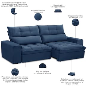 Quando o assunto é conforto inteligente com durabilidade, o Sofá Retrátil Reclinável Asaph 210cm chega para transformar seus momentos de relaxamento.