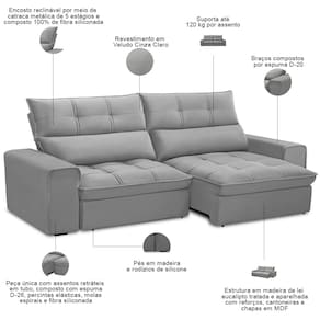 Quando o assunto é conforto inteligente com durabilidade, o Sofá Retrátil Reclinável Asaph 210cm chega para transformar seus momentos de relaxamento.
