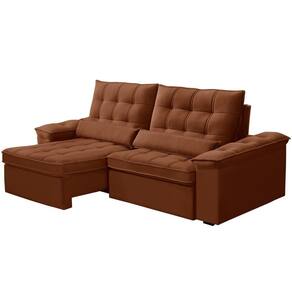 Unidades por kit: 1 | Cor: Terracota | Requer montagem: Não | Altura: 110 cm | Tipo de produto: Sofá Retrátil Reclinável | Peso máximo suportado: 240 kg | Peso: 70 kg | Orientação do Sofá: Frontal | Mecanismo de abertura do produto: Manual, rodízios de silicone | Material do estofamento: Veludo | Material de enchimento do encosto: Fibra Siliconada | Linha: Sala de Estar | Formato do sofá: Linear | Estilo: Moderno | Desenho do tecido: Liso | Fabricante: Lyam Decor | Largura: 210 cm | Densidade da espuma do assento: D-26 | Cor dos pés: Marrom | Profundidade: 121 cm | Quantidade de Caixas de embalagem: 1