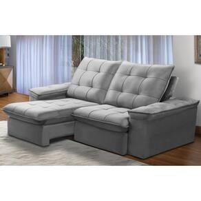Sofá Retrátil Reclinável Para Sala 3 Lugares 210cm Nijma F04 Veludo Cinza Claro - Lyam Decor