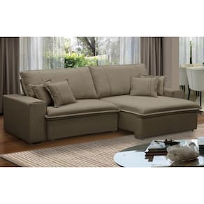 Orientação do Sofá: Frontal | Requer montagem: Não | Estilo: Moderno | Cor: Amêndoa | Desenho do tecido: Liso | Tipo de produto: Sofá Retrátil Reclinável | Fabricante: Lyam Decor | Mecanismo de abertura do produto: Manual, rodízios de silicone | Peso: 70 kg | Material de enchimento do encosto: Fibra Siliconada | Material do estofamento: Linho | Peso máximo suportado: 240 kg | Altura: 100 cm | Linha: Sala de Estar | Formato do sofá: Linear | Unidades por kit: 1 | Largura: 210 cm | Densidade da espuma do assento: D-26 | Cor dos pés: Marrom | Profundidade: 100 cm | Quantidade de Caixas de embalagem: 1