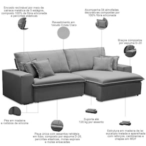 Acompanha quatro almofadas decorativas compostas por 100% fibra siliconada.