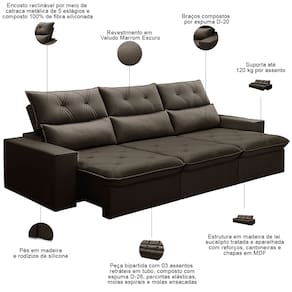 Sua estrutura em madeira não é apenas firme, é a promessa silenciosa de anos de bons momentos compartilhados, principalmente, quando aliado às percintas de reforço que trabalham discretamente, como guardiãs da durabilidade, enquanto você simplesmente vive. O segredo está nos detalhes que falam à alma: a espuma de alta densidade parece lembrar o formato do seu corpo; o mecanismo retrátil com molas ensacadas é suave como o cair da tarde e o encosto reclinável parece que sussurra "fica mais um pouco" nos seus momentos de descanso. O tecido? Um convite ao toque. O visual? Aquele abraço de sofisticação discreta que sua sala de estar esperava.