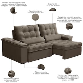 Ideal para quem busca sofá confortável, o Sofá Retrátil Reclinável Maresi 230cm é a opção certa.