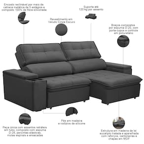 Com encosto reclinável e assento retrátil, esse sofá 3 lugares se adapta ao seu momento - seja para um descanso profundo ou para relaxar assistindo sua série favorita. O destaque fica para os porta-copos e porta-controle integrados, que mantêm tudo ao alcance das mãos com muito estilo e organização. Por sua vez, a tapeçaria ultra macia envolve você em uma sensação acolhedora, enquanto a estrutura reforçada garante durabilidade sem igual.