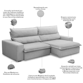 Revestimento em tecido Linho de alta qualidade na tonalidade Cinza.