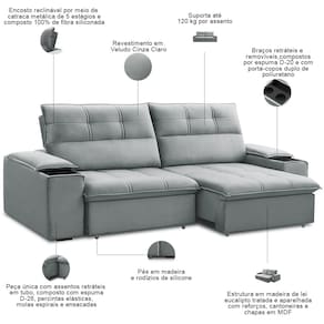 Transforme seu espaço com o Sofá Retrátil Reclinável Zayn 230cm, da Lyam Decor, conforto inteligente para todos os ambientes!