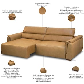 Dono de um design impecável, o Sofá Retrátil Reclinável Para Sala 3 Lugares 240cm Livorno L06 Couro Camel, da Lyam Decor, é a escolha certa para pessoas de gosto exigente, que não abre mão do conforto e estilo.