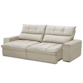 Sofá Retrátil Reclinável Para Sala 3 Lugares 250cm Asaph F04 Veludo Bege - Lyam Decor