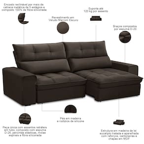 Quando o assunto é conforto inteligente com durabilidade, o Sofá Retrátil Reclinável Asaph 250cm chega para transformar seus momentos de relaxamento.