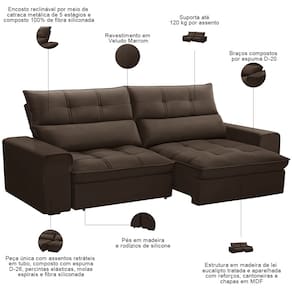 Quando o assunto é conforto inteligente com durabilidade, o Sofá Retrátil Reclinável Asaph 250cm chega para transformar seus momentos de relaxamento.